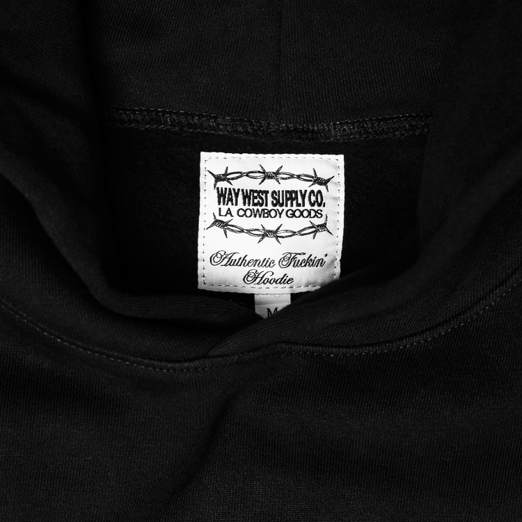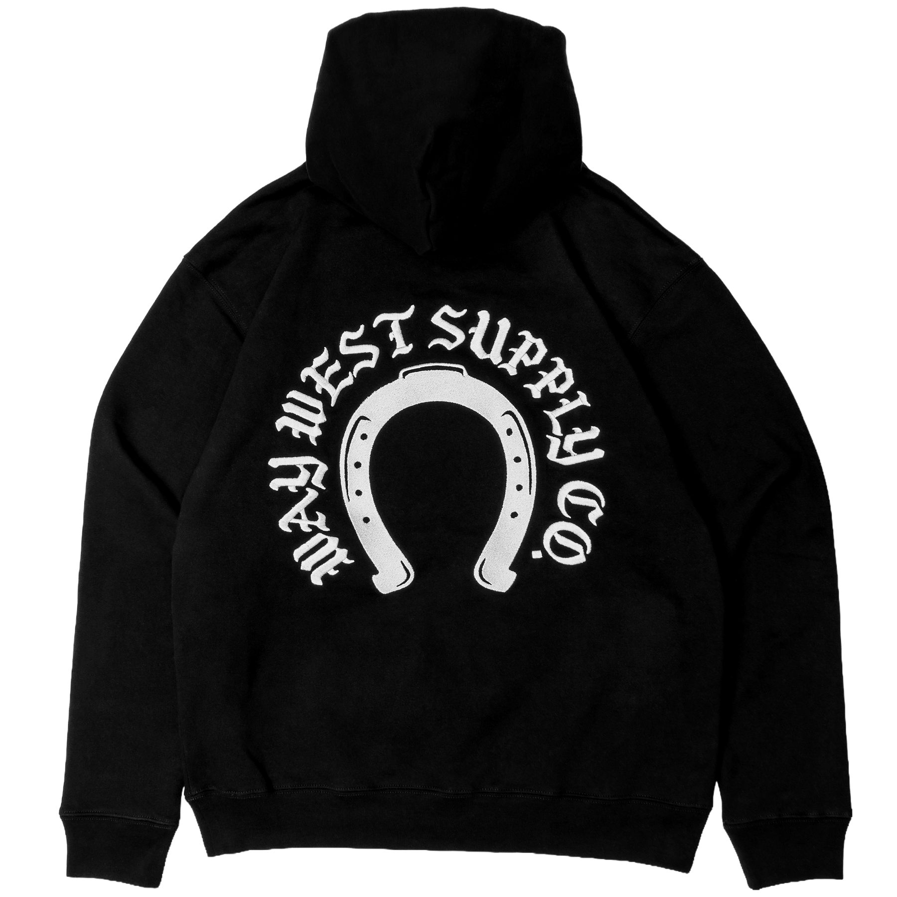 Classic black hoodie with embroidery on front and back.